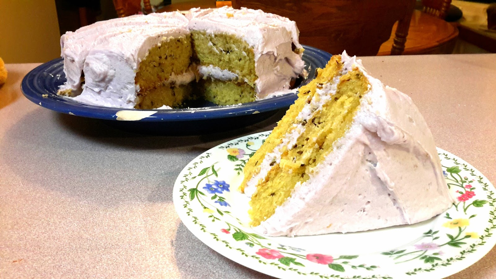 Place one cake on a plate. Frost the top with a generous amount of lavender frosting. Place the second cake on top and use the remaining frosting to frost the top and sides of the entire cake. Serve and enjoy!