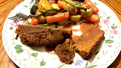 -Slice the roast, divide it amongst plates, add a scoop of vegetables and drizzle with gravy. Enjoy with some nice red wine.